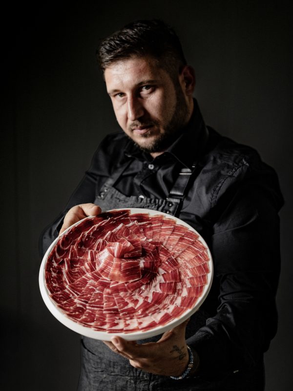 Agli eventi con i ristoranti, dietro il banchetto c’è lui. Andrea è Maestro Cortador da 20 anni, il primo riconosciuto in Italia dall’ambasciata spagnola. Professionista di taglio del Jamon Iberico, è anche maestro di corsi professionali.